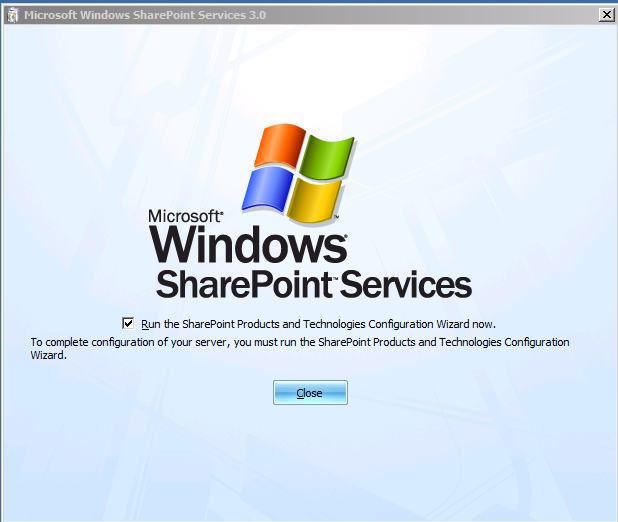 - When the installation is finished, choose the “Run the SharePoint Products and Technologies Configuration Wizard now” option.