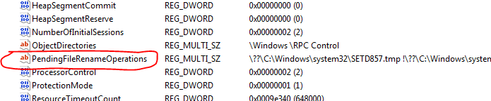 HKEY_LOCAL_MACHINE\SYSTEM\CurrentControlSet\Control\Session Manager\PendingFileNameOperations