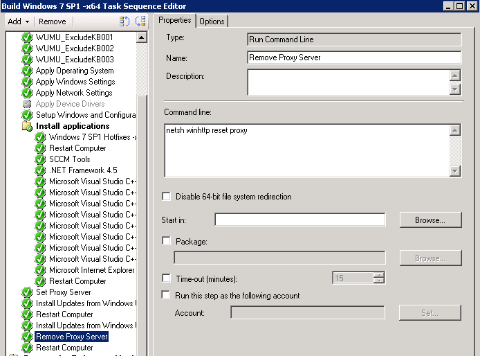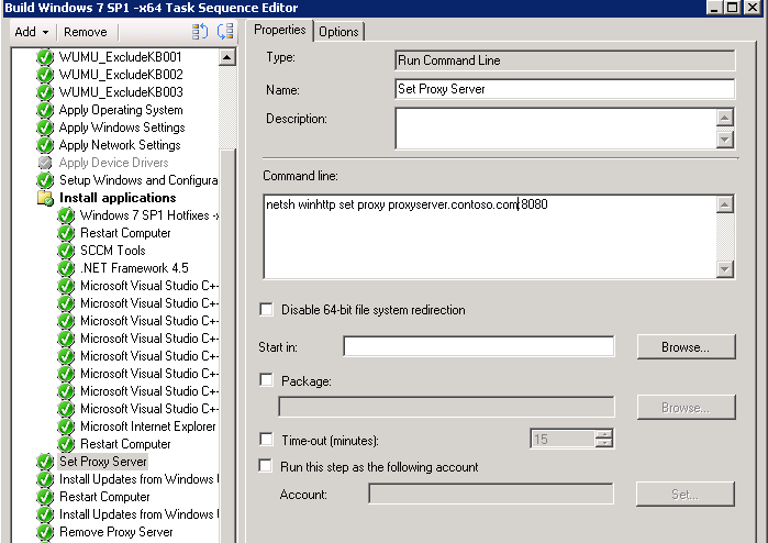 In some scenarios you need to use a proxy to be able to use Windows Update during the task sequence, when the script is run when using MDT this script can be used: http://blogs.technet.com/b/deploymentguys/archive/2010/11/30/using-the-mdt-windows-update-tasks-in-image-engineering.aspx however when you use Configuration Manager there is no logged on user we need to use Netsh Winhttp Set Proxy