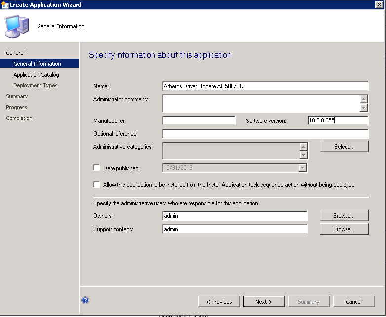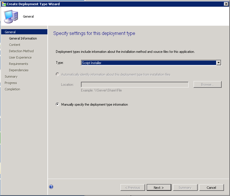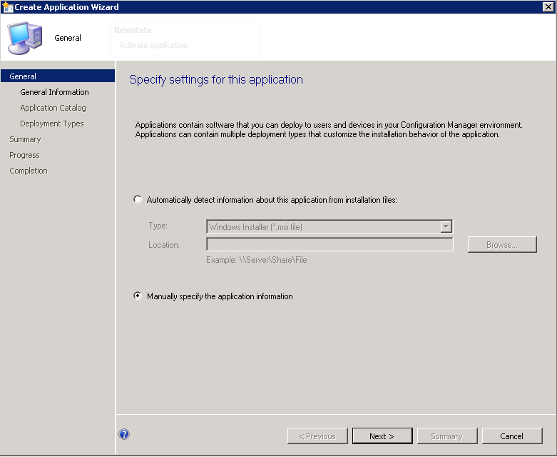 pnputil.exe -i -a %~dp0netathr.inf - Create a new application using the manual option as the screenshots below describes.