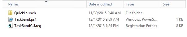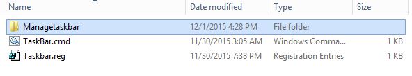 The .cmd file will copy the following files to C:\Windows\ManageTaskbar where the Runonce command will run the Powershell script from.