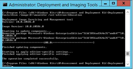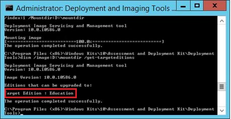 To actually upgrade the image to Education use the following commands in the “Deployment and Images Tools Environment” as above.