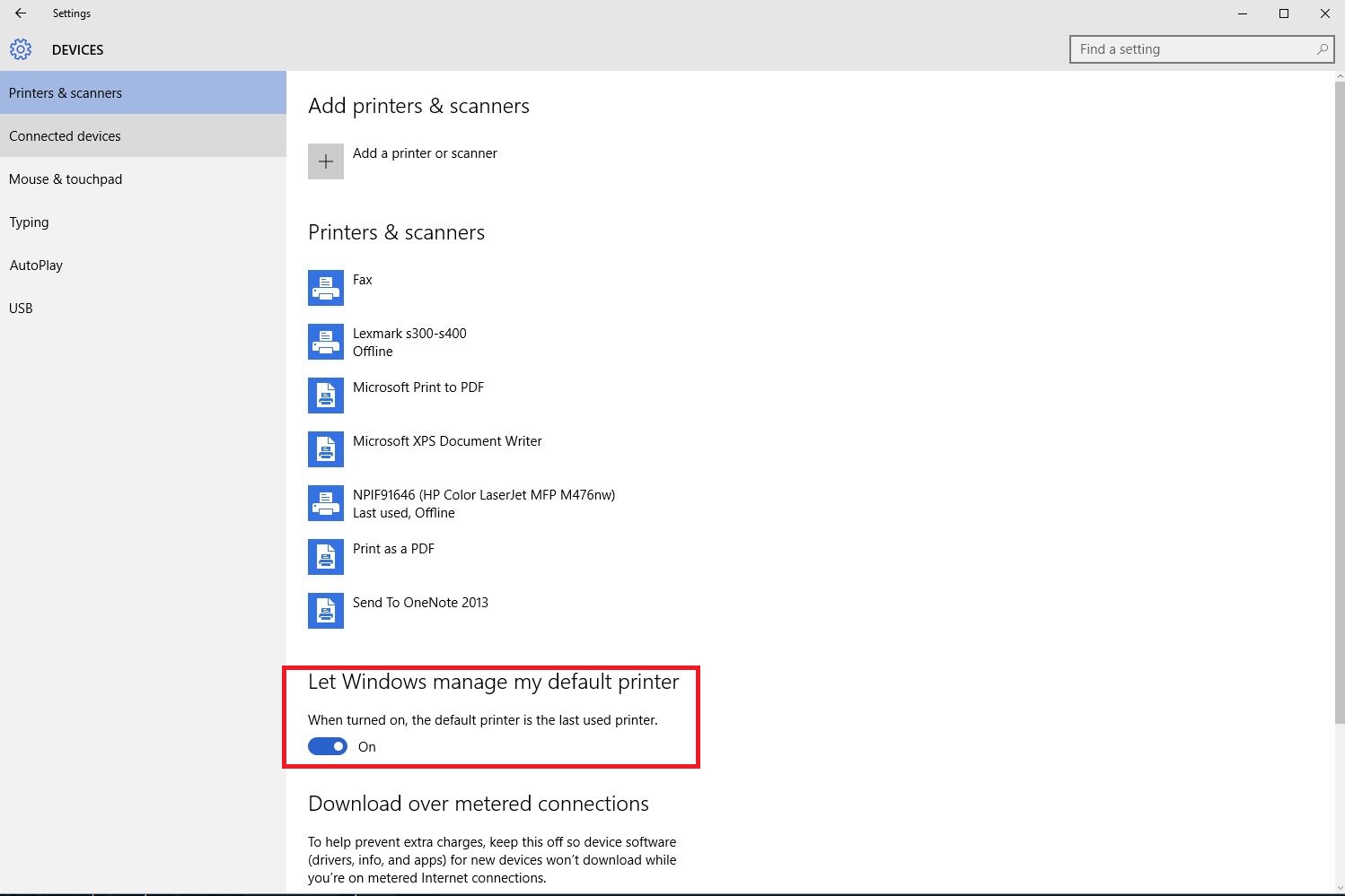 Unfortunately, I’m one of the many people for whom neither solution works. In fact, after changing the setting to Off, Windows still kept changing the default printer. So I checked the register setting, and the value data was set to 1.